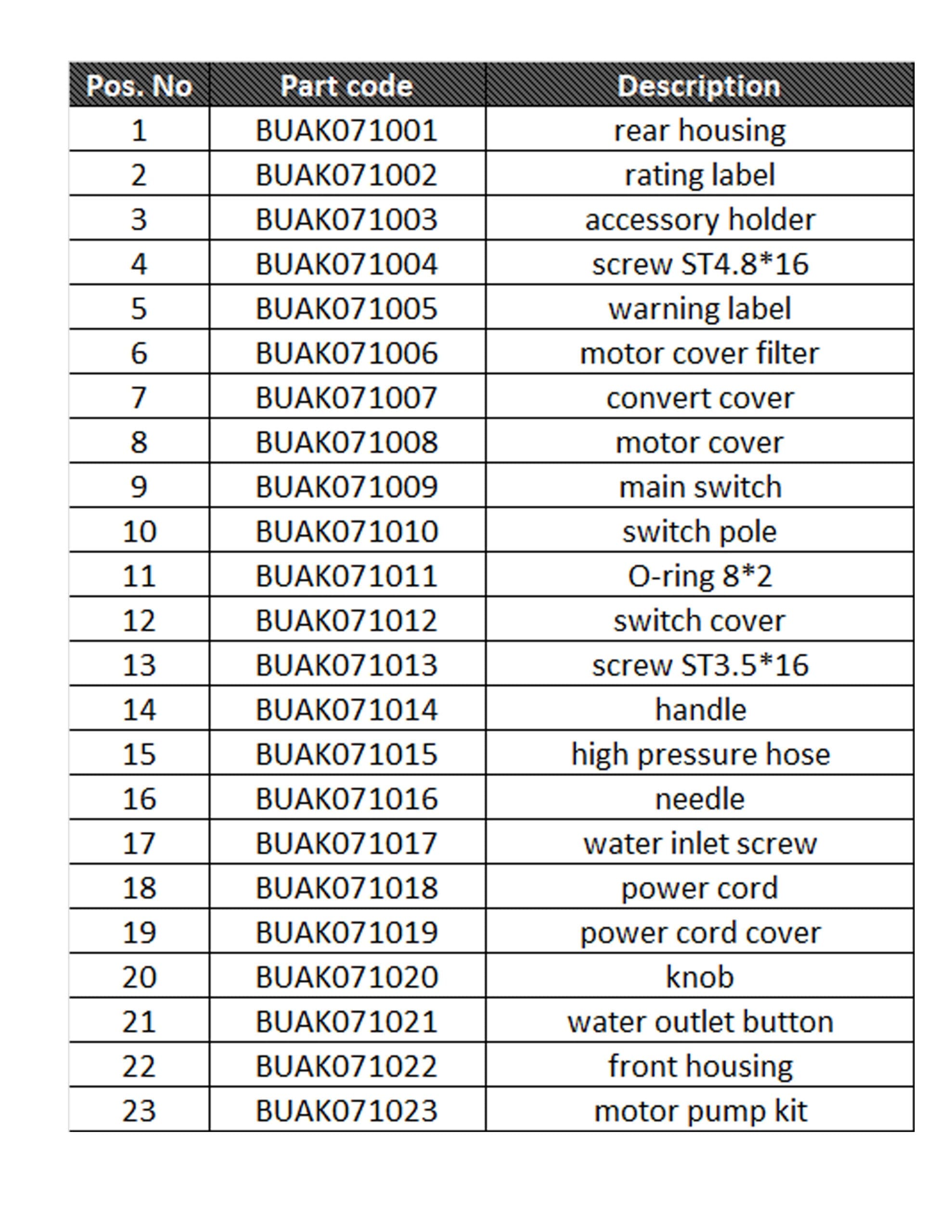 • EW U11P - Parts List